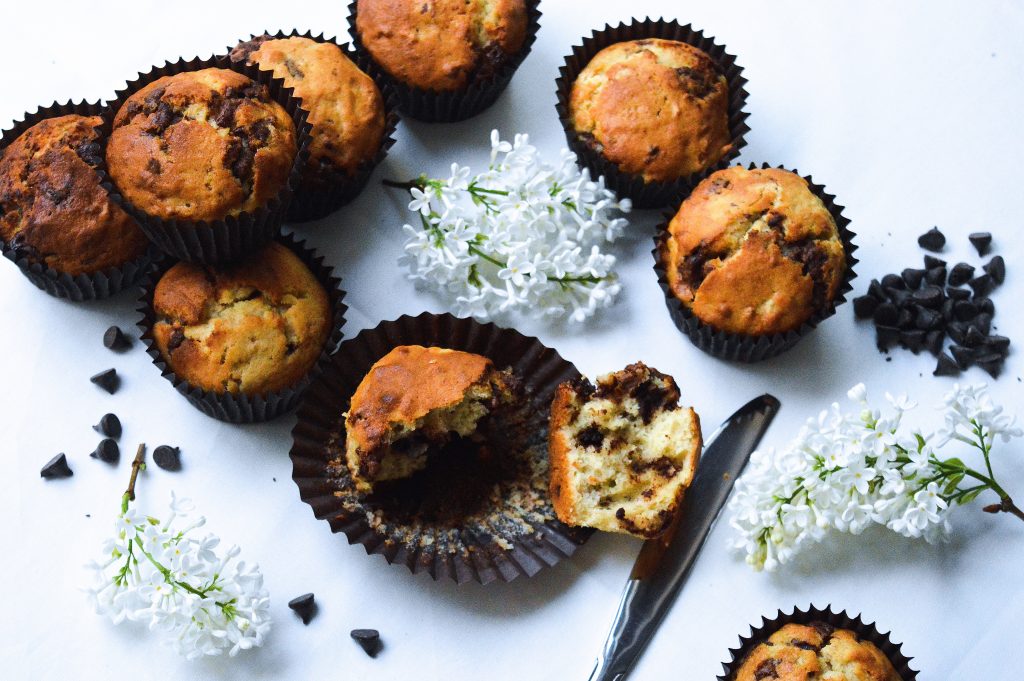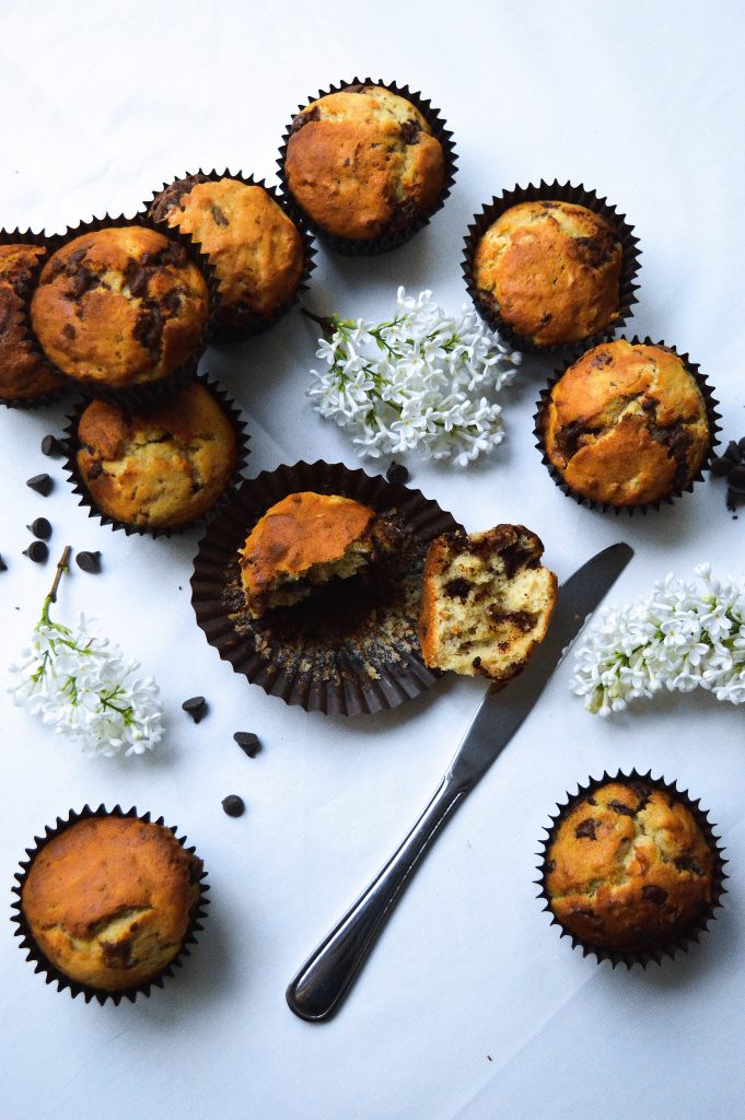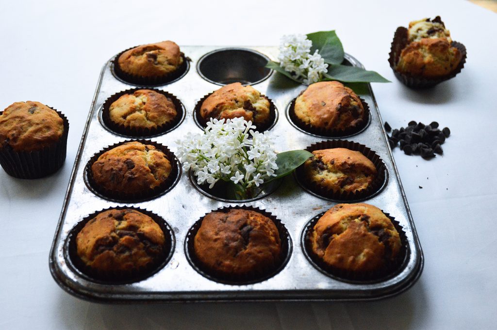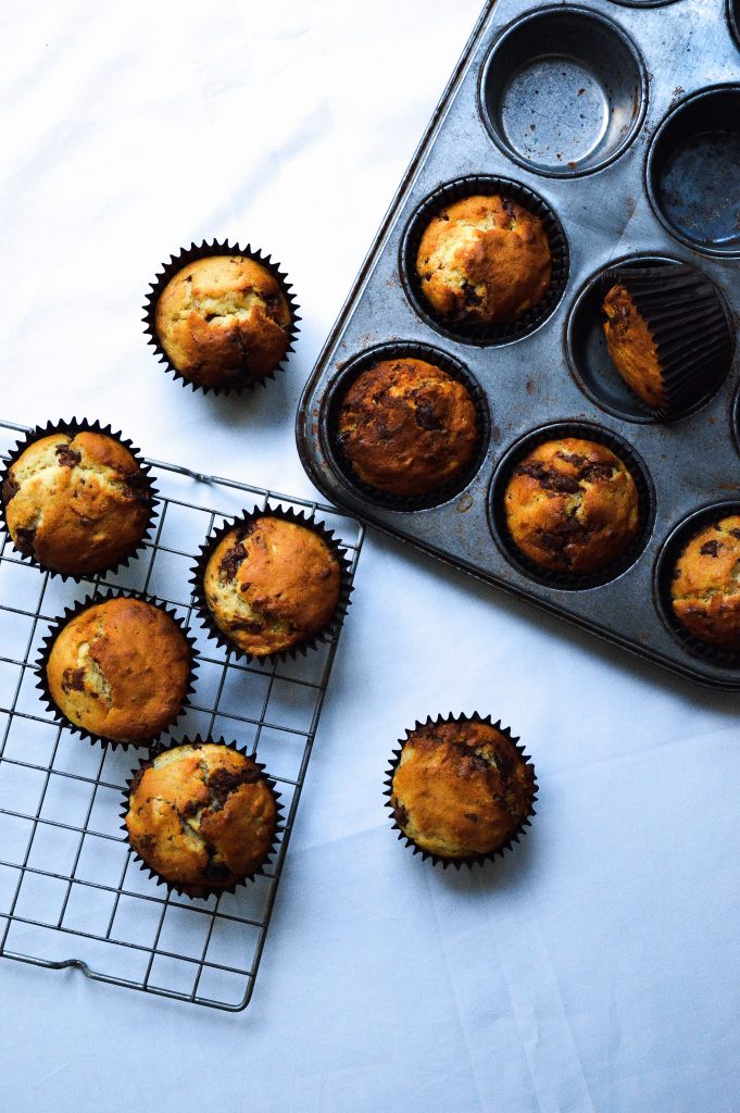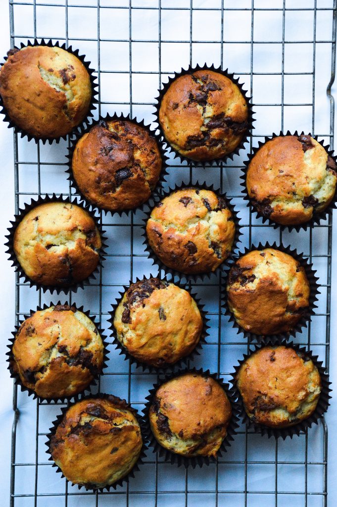 As a result, the muffins are much quicker to cook, taking only 15 minutes in the oven, meaning that these muffins take an absolute maximum of 30 minutes to make, start to finish. Also, they are easier to freeze as muffins, which when there are only 2 of you in a house, makes it much easier as then you don’t sit there eating 4 muffins in a single day. Yes, I have indeed done that and no, I do not have any regrets about that. Freezing them also means that you have fresh muffins at your disposal and they only take 5 minutes in the microwave on a defrost option before you have warm, gooey banana and chocolate muffins for breakfast.