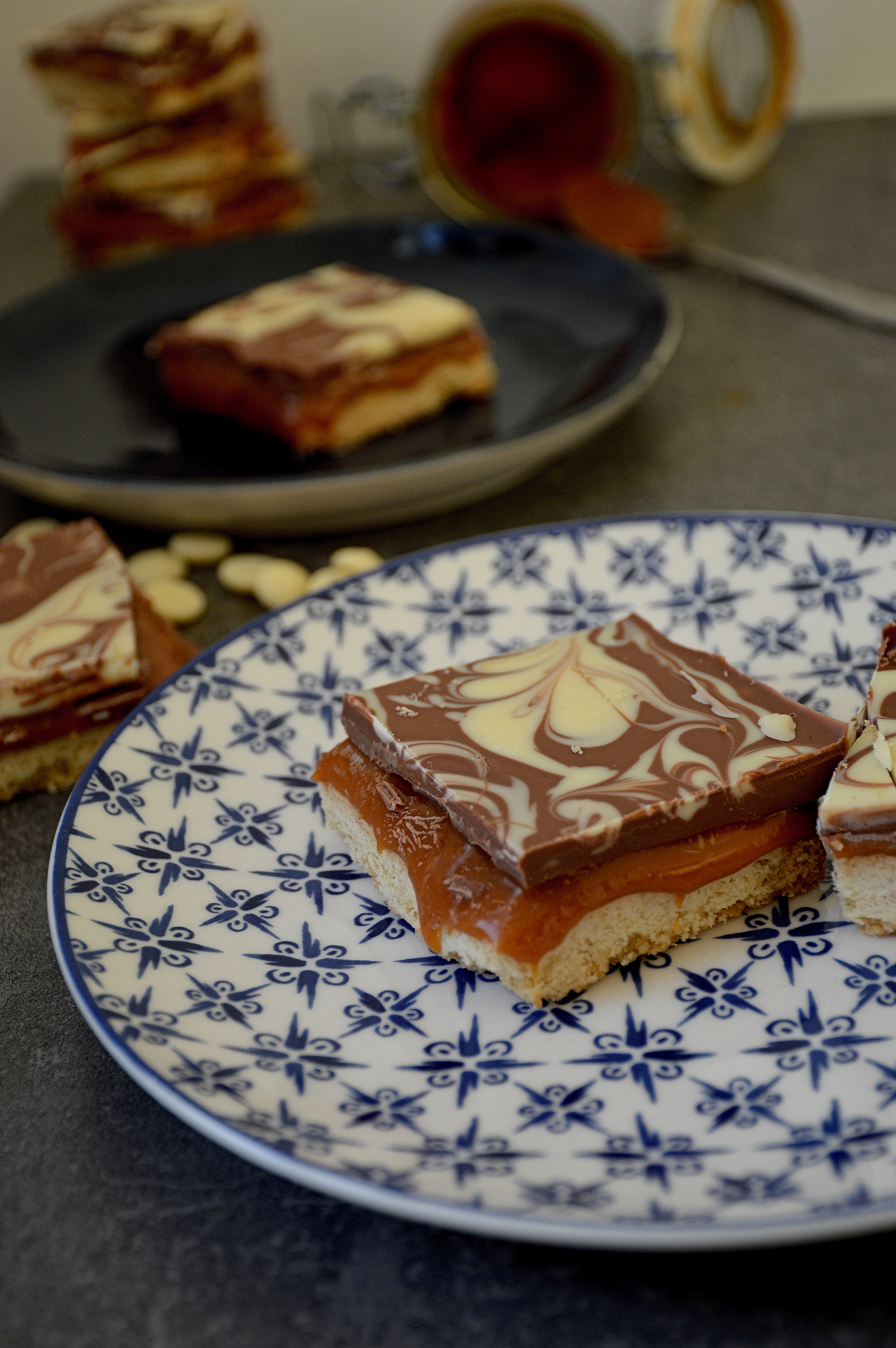 One of the things I did test out, and eat a lot of was this millionaire’s shortbread. It was so good and went down really well with the flat. Well it went down exceedingly well with one of them as it was her idea really. I asked her what to make as I was having a bit of an idea funk and she replied millionaire’s shortbread.